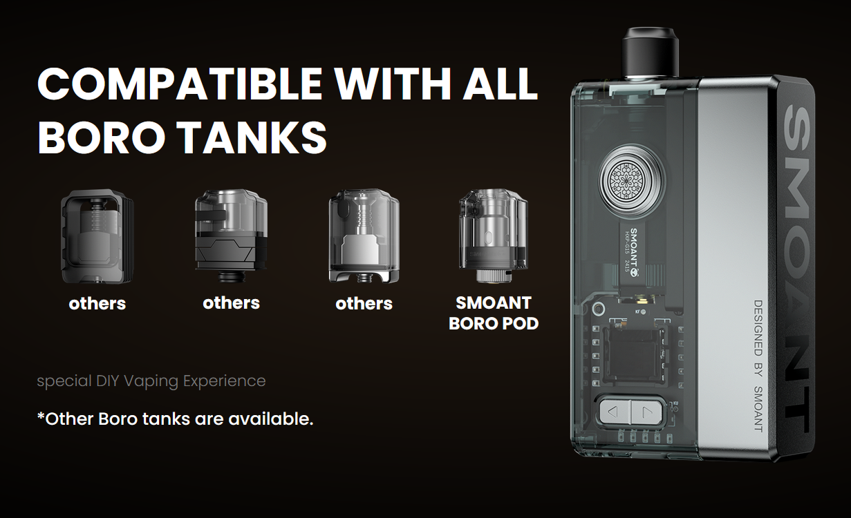 С емкостью картриджа 5.0 мл, Smoant Knight AIO позволяет вам наслаждаться длительными сеансами без частой замены жидкости. Используйте испарители серии K для оптимального вкуса и насыщенности. А так же присутствует поддержка сторонних BORO-танков и 510 дриптипов.