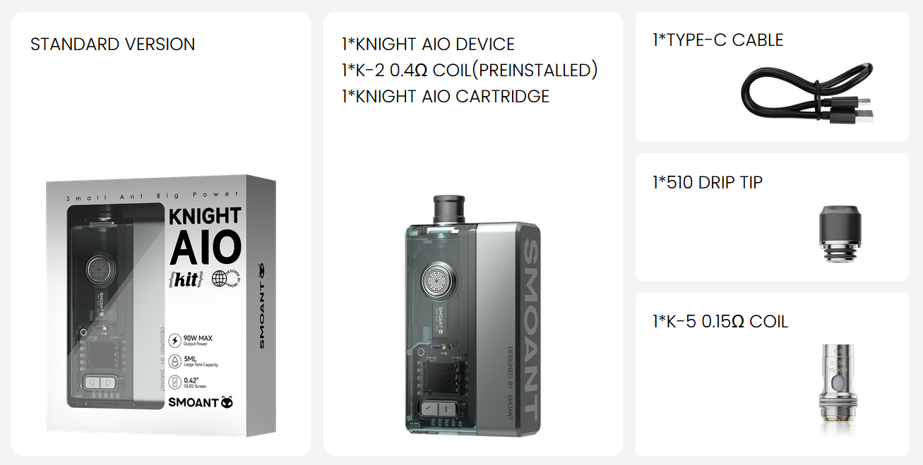 Компания Smoant представляет Smoant Knight AIO 90W — универсальное устройство для вейпинга, которое сочетает в себе современные технологии и качественный дизайн. Благодаря уникальному сочетанию материалов, включая прочный цинковый сплав и легкий пластик, этот набор обеспечивает долговечность и комфорт при использовании.Мощность и многогранность: